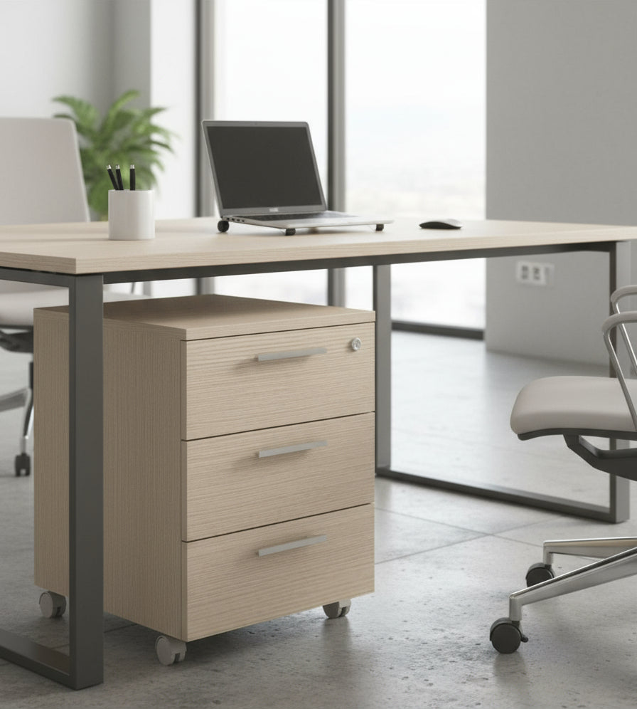 Estamos ante una funcional solución de almacenaje para tu oficina o despacho, así como para cualquier uso en la empresa. Una cajonera de tres cajones con cierre centralizado y silencioso. Ideal para guardar documentos importantes.