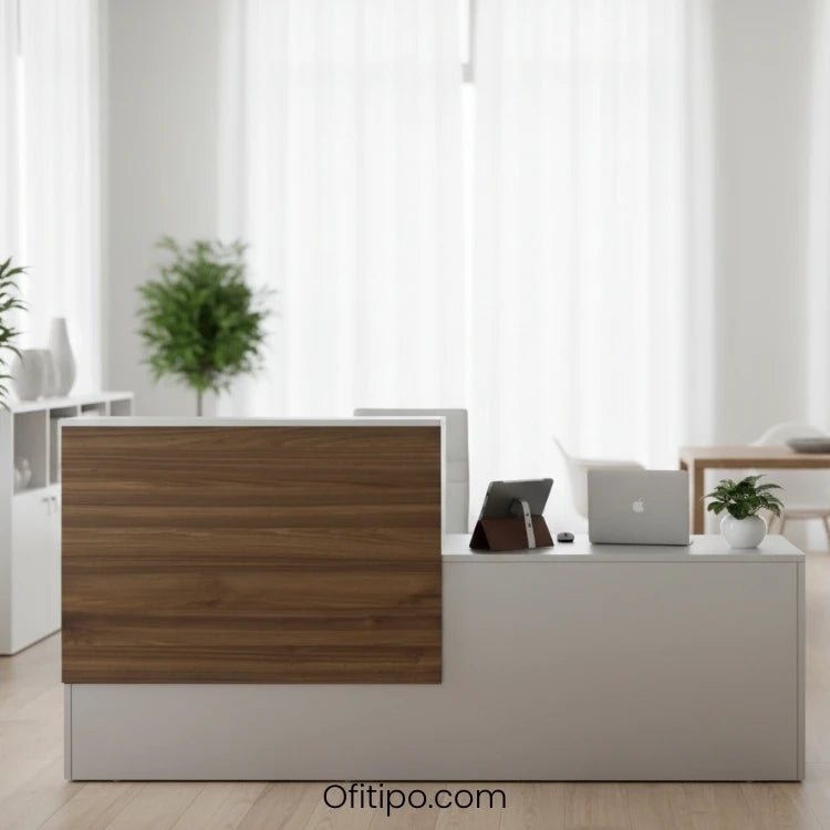 La importancia del espacio de recepción de nuestro negocio es clave. Es el lugar en el que nuestros clientes van a tener el primer contacto con nuestra empresa y por ese motivo es fundamental que esta primera impresión sea positiva y transmita confianza. El mostrador de recepción recto Nepar cumple a la perfección con este requisito, aportando una imagen distintiva y grandes posibilidades de personalización entre los diferentes elementos de la gama.